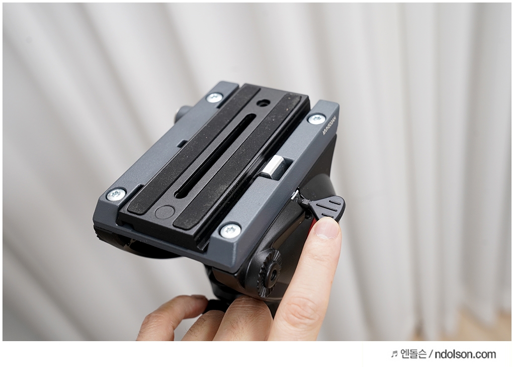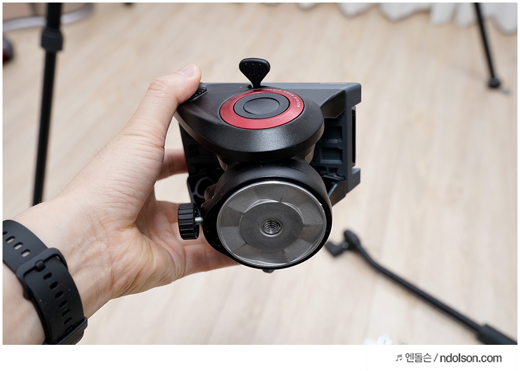 측면에 레버를 돌려서 감아주면 조금 더 강한 고정력을 가지게 되고 풀어주면 더 편하게 무빙 영상을 촬영할 수 있게 해줍니다.