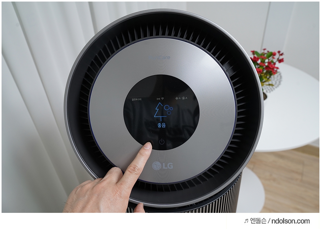 터치화면이라 손으로 직접 하는 게 더 편할 수도 있습니다. 인공지능으로 설정해두면, 알아서 우리 집의 공기를 관리해주어 신경 쓸 게 없어 편합니다. 어떤 날은 공기가 너무 좋으니 할 게 없데요. 집에 누가 방귀 뀌거나 창문 열어둔 날은 또 열일을 하는 것이고요.