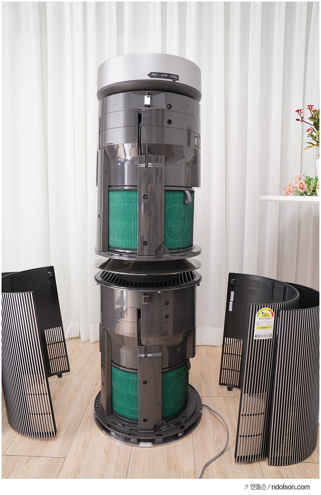 LG 퓨리케어 360도 공기청정기 알파는 상단, 하단 두 개의 필터로 구성되어 있습니다. 우리 집의 생활공간에 맞는 평수이며, 동시에 상/하 동작 또는 분리 동작으로 효율성을 갖추었습니다.