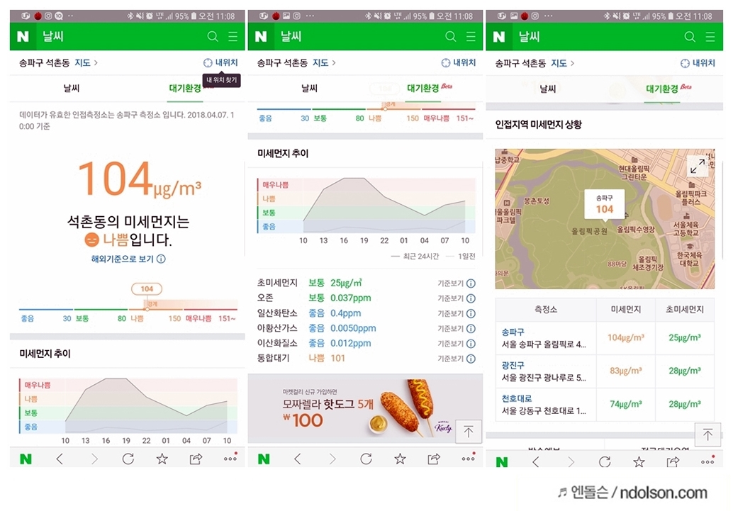 시각적으로 쉽게 알 수 있게 나무 그림이 나오는데, 그린이면 공기의 질이 깨끗한 상태이고 오른쪽처럼 빨간색이면 좋지 않은 상태입니다.