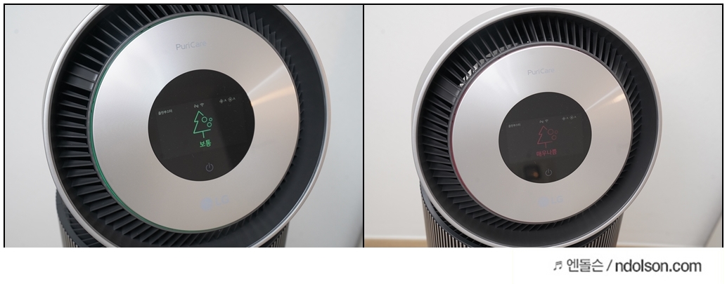 상단과 하단 모두 실내 청정 오염도 상태를 색상으로 나타내 주어 쉽게 알 수 있었습니다.