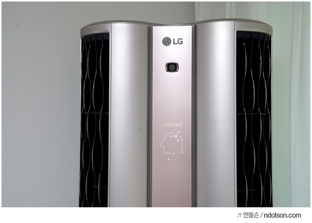 인공지능 카메라 부분도 깨끗하게 물티슈로 닦아 주었습니다. 또 에어컨 바람이 나오는 그릴 부분도 깨끗하게 닦아 주면 더 청결합니다.