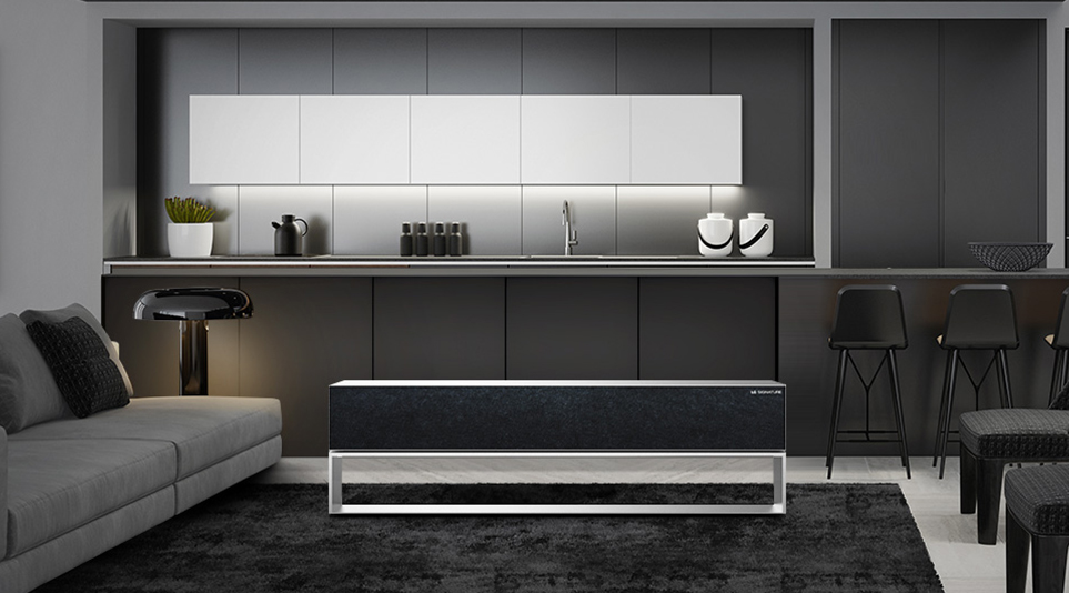 LG전자는 TV 하면 생각나는 복잡한 선들을 알루미늄으로 마감한 얇은 스탠드 안으로 전부 숨겨 깔끔하게 TV 자체가 오브제가 될 수 있게 만들었습니다.