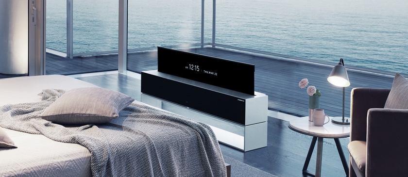 아주 미래지향적인 모습이 인상적인 세계 최초 롤러블 TV LG 시그니처 올레드 R을 기억하실겁니다. 벽에 TV를 둔다는 고정관념을 없애버렸는데요. 거실이 아닌 침실이나 다른 공간에 자유로운 공간 활용이 가능하게 둘 수 있다는 것인데요.