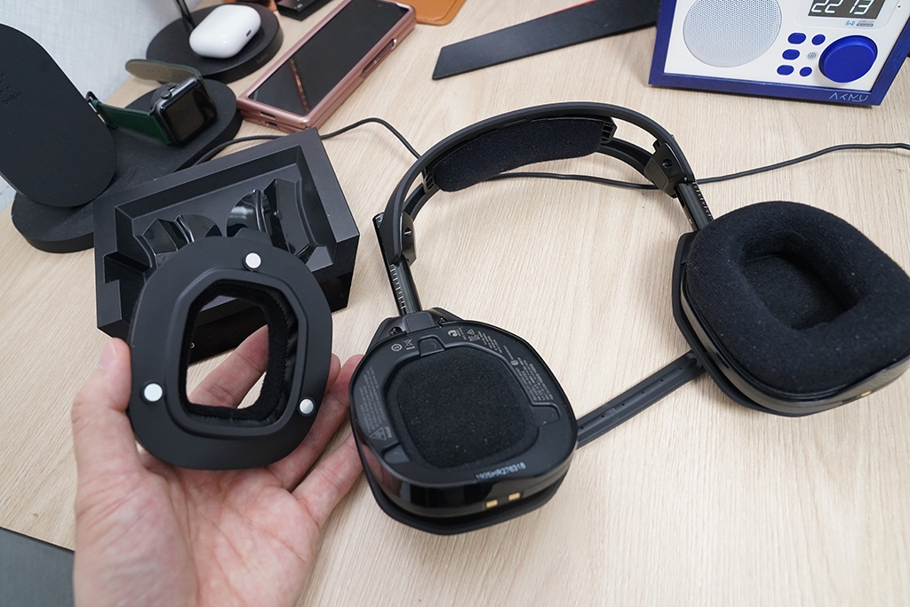장시간 착용하게 되는 헤드셋 특성상 아스트로 A50 4세대의 이어쿠션과 헤어밴드가 교체가 가능하게 되어 있습니다. 그래서 헤어밴드 부분은 탈부착하여 청소가 가능하게 되어 있네요.