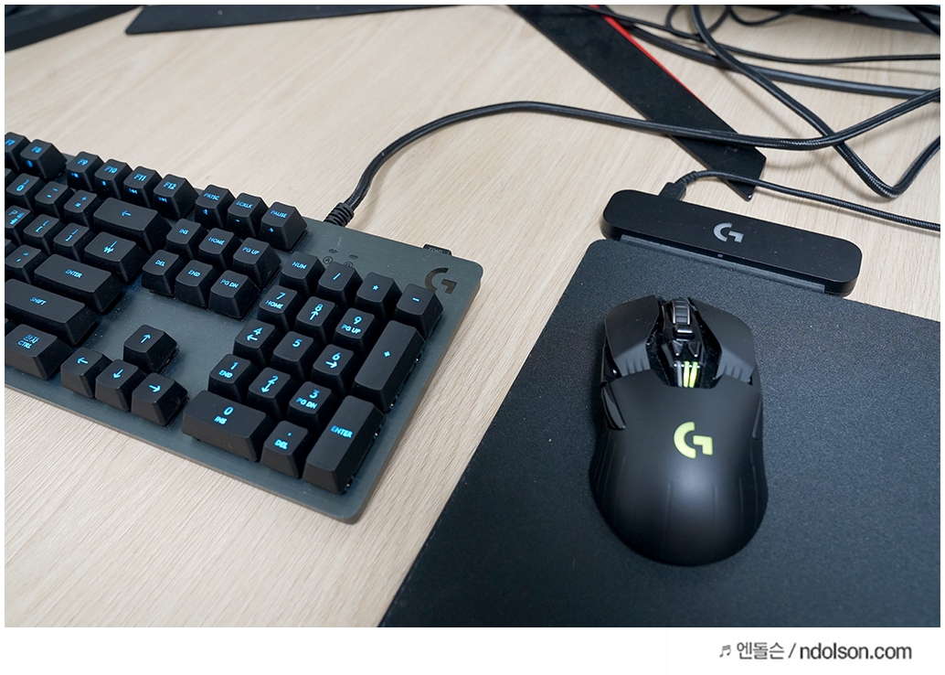 한번 충전으로 최대 180시간을 사용할 수 도 있는데요. 배터리가 부족하다는 생각은 전혀 들지 않았습니다. 또 필자는 로지텍 POWERPLAY 를 사용하고 있어 마우스패드를 통해서 마우스를 항상 충전시키고 있죠.