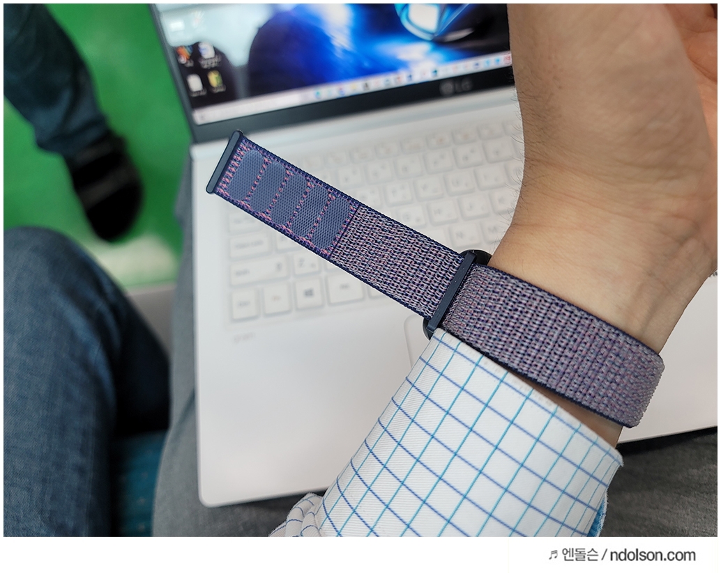 손목의 길이 조절을 자유롭게 할 수 있습니다. 개인적으로 길이가 고정된 걸 싫어해서 매우 만족 합니다. 또 이전 기본 GTS2 미니 기본 스트랩은 잠잘 때 여름이라 땀차고 자국이 남는데, 그러질 않는 게 가장 큰 장점입니다.