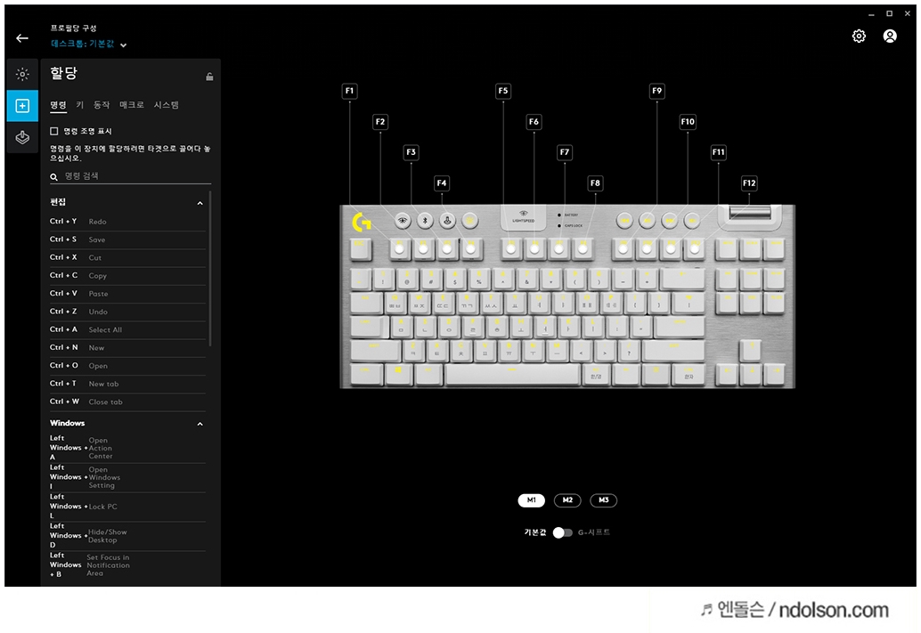 로지텍 G HUB 프로그램을 설치하면 키보드에 키 할당을 통해서 생산성을 높여 볼 수 있습니다. 자주 사용하는 것을 매크로로 만들어 사용하면 작업을 빨리 할 수 있어 좋죠.