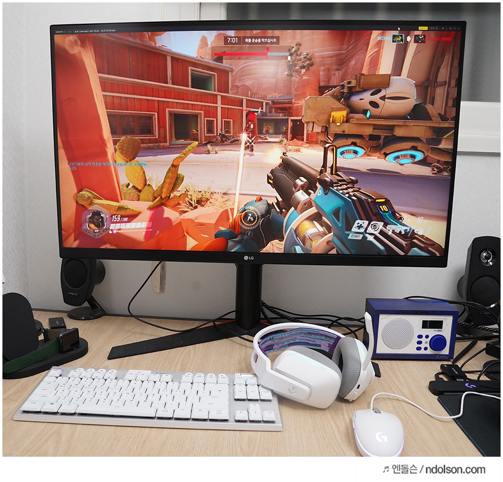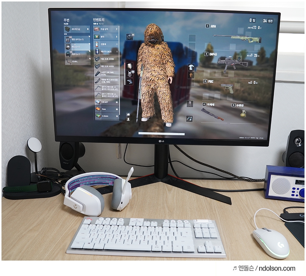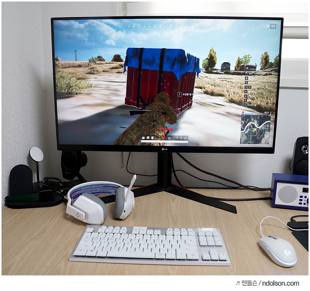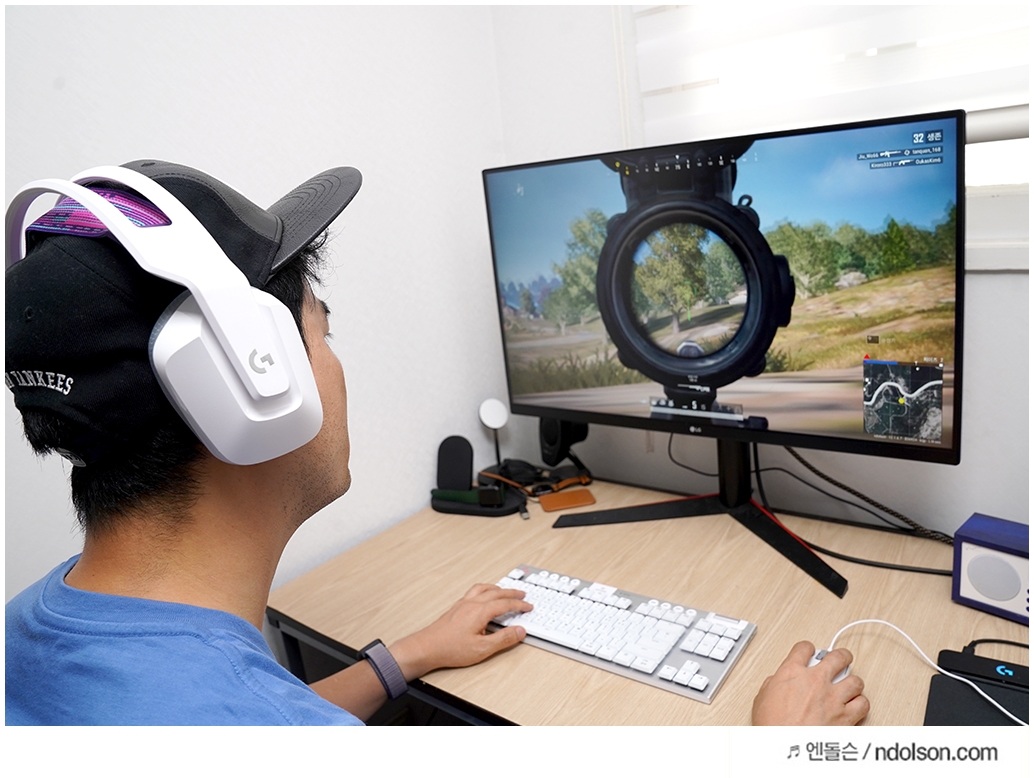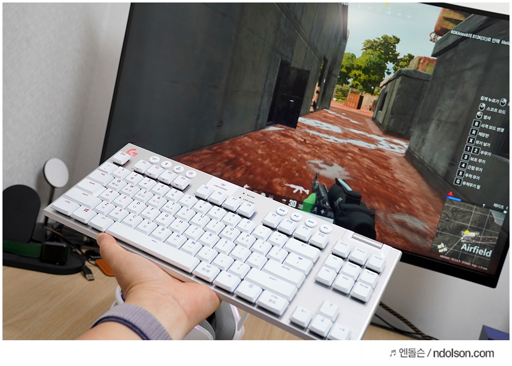 개인적으로 2주 넘게 로지텍 G913 TKL 화이트를 사용하면서 만족스러움을 느낀 부분이 있습니다. 내가 원하는 심플한 책상을 구성할 수 있는 유선이 아닌 무선이고, 공간 차지 없는 텐키리스 키보드라 게이밍을 즐길 때 마우스 공간적인 부분이 충분하다는 것이었습니다.