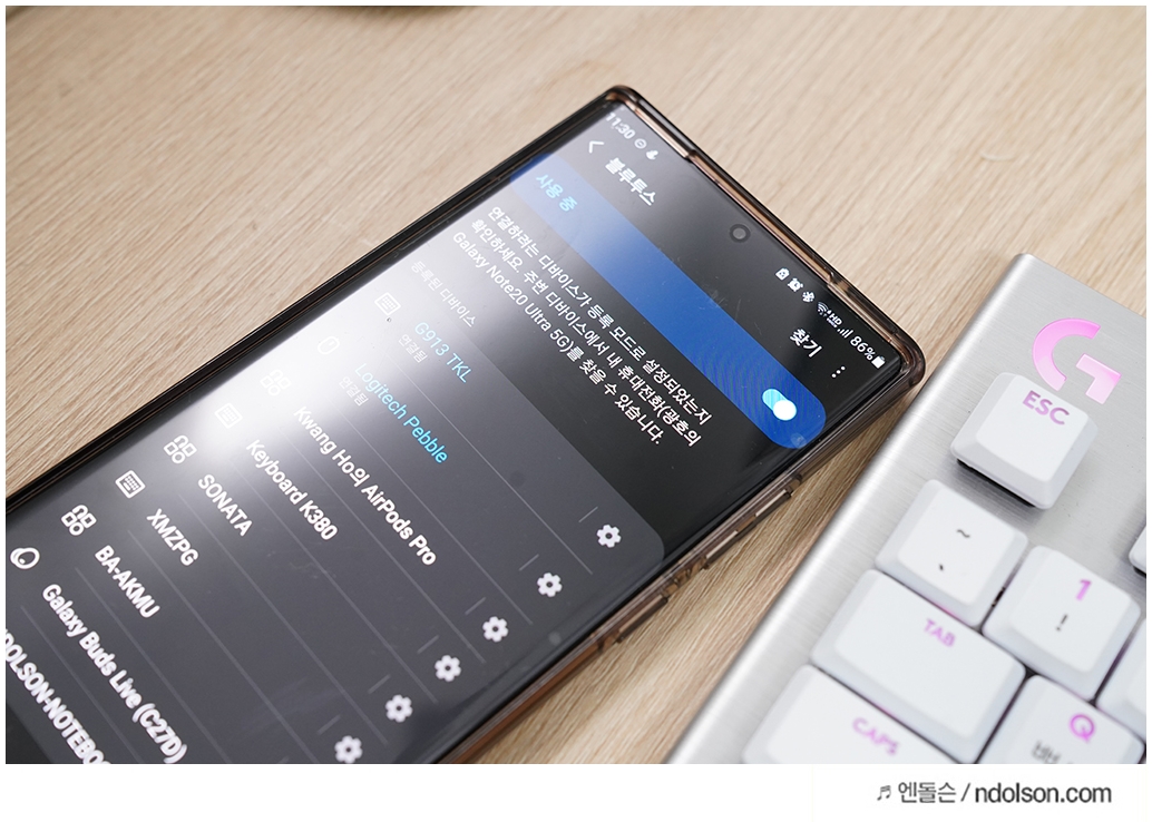 로지텍 전용 USB 수신기가 아니라도 블루투스도 지원되는 점도 좋았습니다. 스마트폰과 블루투스 연동하여 삼성 덱스를 사용하기 좋다는 것이죠. 하지만 배터리 소모는 로지텍 전용 USB 수신기를 사용할 때가 더 적게 소모되는 이점이 있습니다. 블루투스 지원되지 않는 데스크톱 PC에서는 선택권이 없고요.