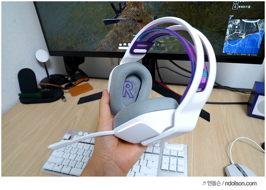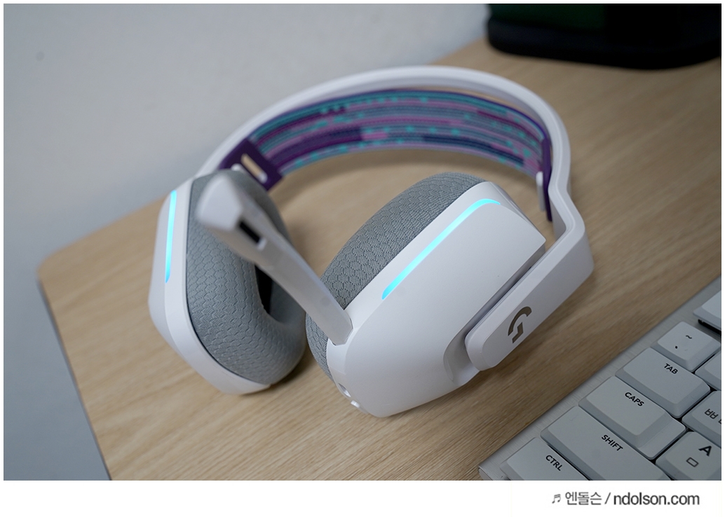 앞서 소개한 로지텍 게이밍헤드셋 G733 입니다. 헤어밴드형으로 장시간 게이밍을 즐기며 사용해도 편안한 착용감을 줍니다. 무엇보다 무선으로 즐길 수 있으며 29시간 이상의 긴 배터리 시간도 가지고 있습니다.
