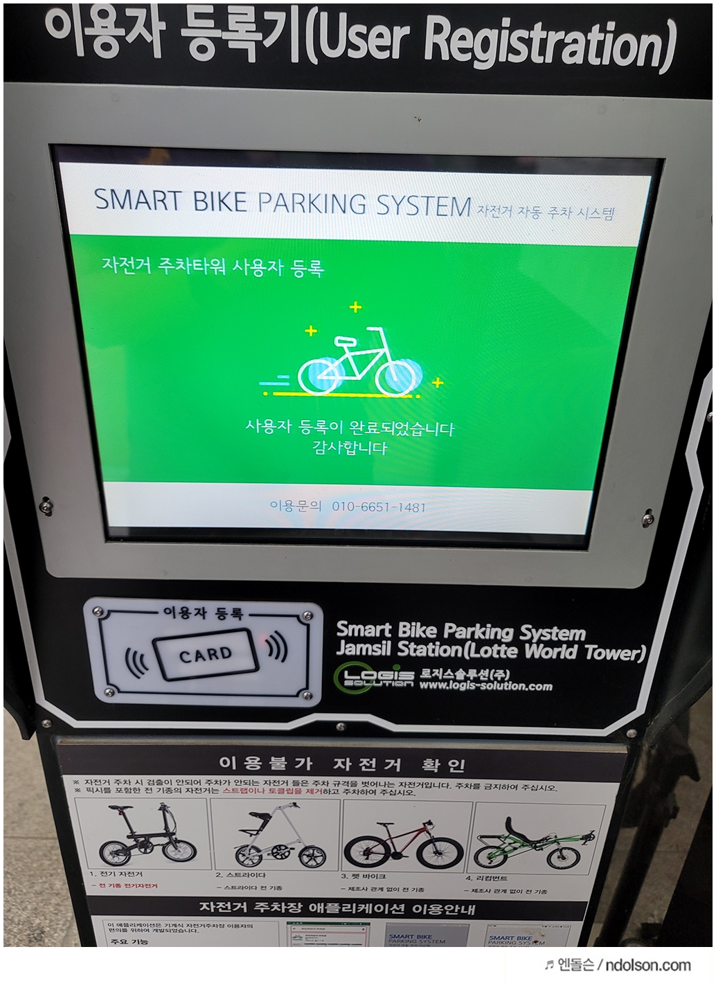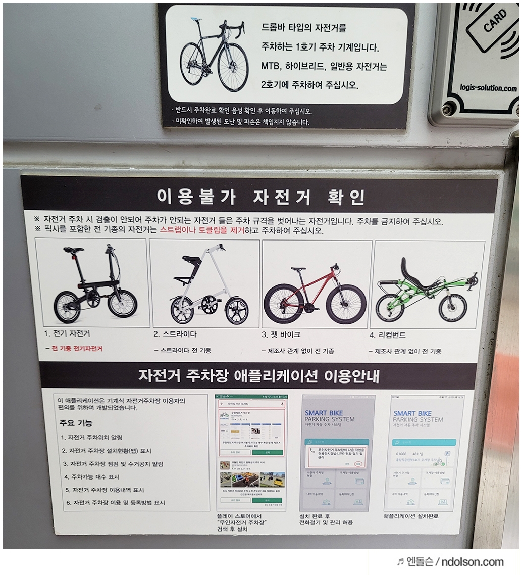 모든 자전거가 주차타워를 이용할 수 있는 것은 아니고 로드 자전거만 가능하네요. 전기 자전거가 안된다니... 전체 자전거가 가능하게 조금 범용성 있게 주차 시스템을 개발해주지..