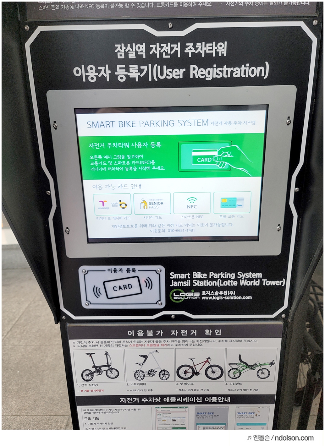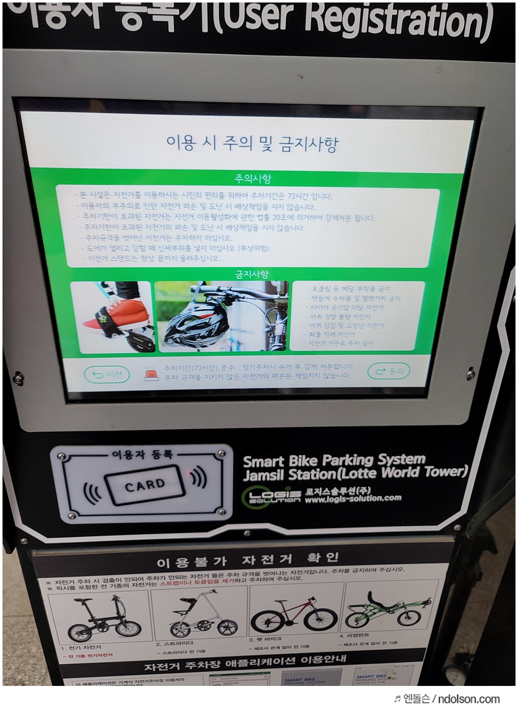 모든 자전거가 주차타워를 이용할 수 있는 것은 아니고 로드 자전거만 가능하네요. 전기 자전거가 안된다니... 전체 자전거가 가능하게 조금 범용성 있게 주차 시스템을 개발해주지..