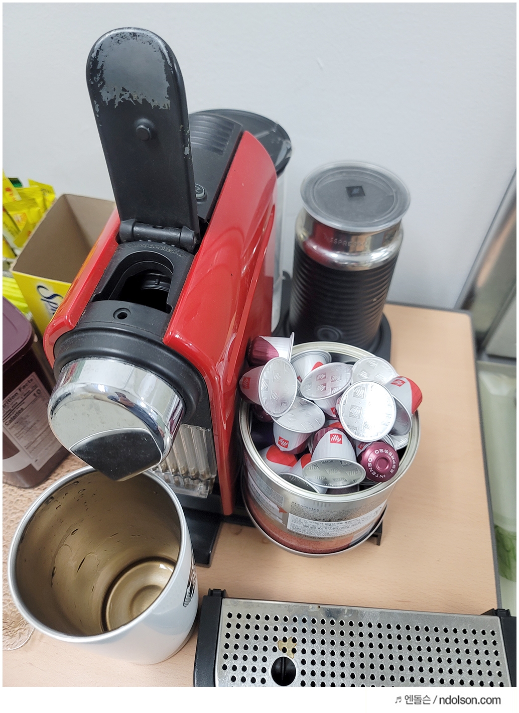 그런데 네스프레소 캡슐이 조금 비싸다. 그리고 좀 다른 커피머신의 캡슐도 먹어 보고 싶다.