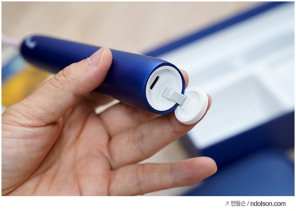 하단부의 뚜껑을 열면 USB-C 단자의 충전부가 나옵니다.