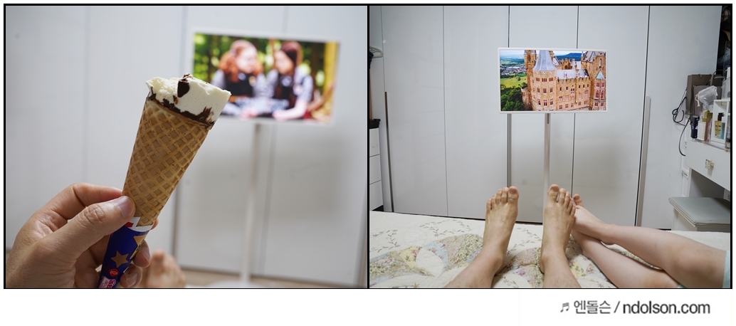 원하는 곳에서 편하게 시청할 수 있는 나만의 프라이빗 스크린이라는 점은 큰 장점이네요. 안방의 침대에 누워서 편하게 TV를 보니 피서지가 부럽지 않네요.