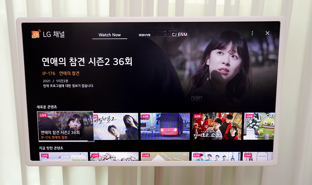 IPTV가 나옵니다. LG채널에서 볼 수 있는 TV로 제공되는 데, Watch Now, Wavve, CJ ENM 채널 영상을 볼 수 있습니다.
