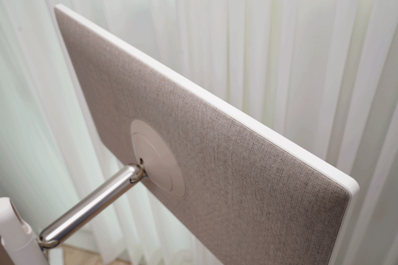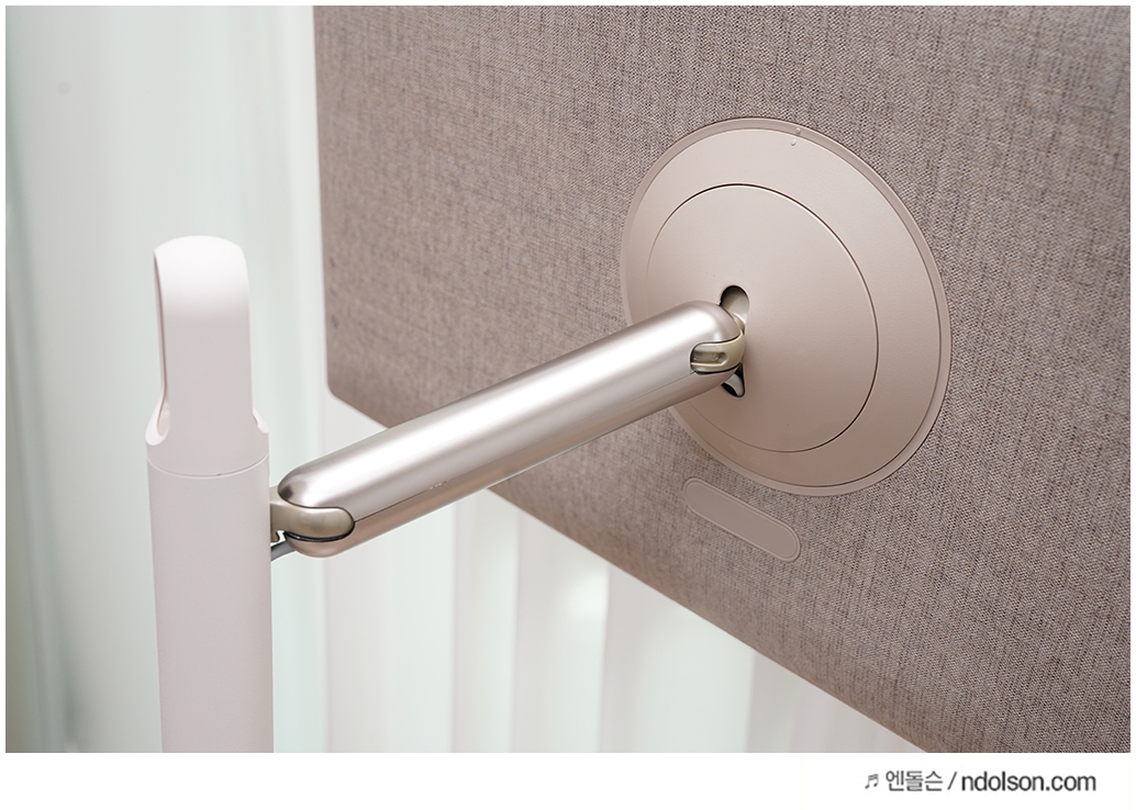 LG 스탠바이미는 가전이라는 생각보다는 인테리어 가구? 아무튼 무쇠 같은 느낌보다 더 포근한 느낌이 듭니다. 아마도 후면에 고급 천 재질로 마감이 되어 있어서 그런 것 같네요.