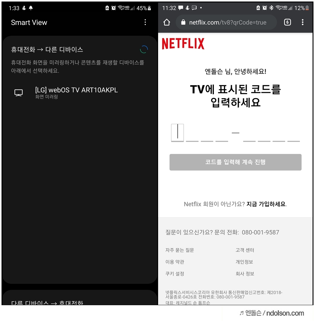 또 넷플릭스, 티빙 등의 앱에 로그인할 때 로그인 아이디/패스워드를 치는 게 아니라 쉬운 QR코드나 스마트폰 연동을 통해서 로그인할 수 있어 귀찮음이 줄어듭니다.