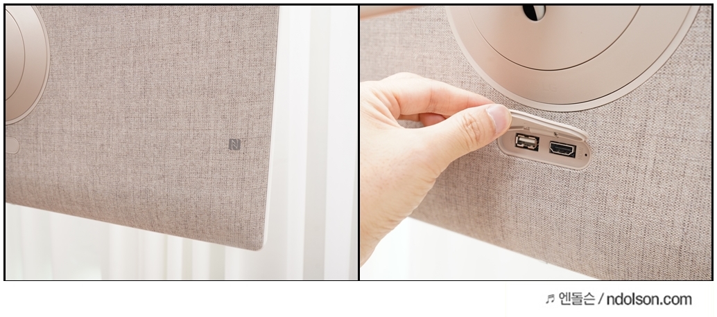 후면에는 NFC 태그가 있어 스마트폰을 손쉽게 연결할 수 있게 해 줍니다. 또 HDMI 단자와 USB 단자를 가지고 있어 듀얼 모니터 확장도 가능합니다.
