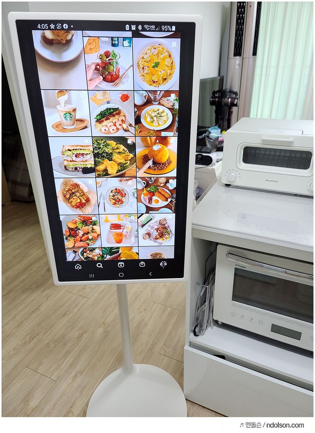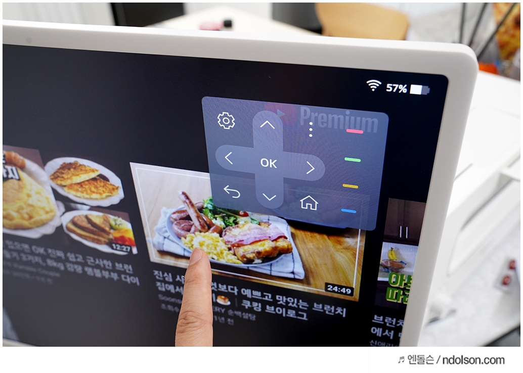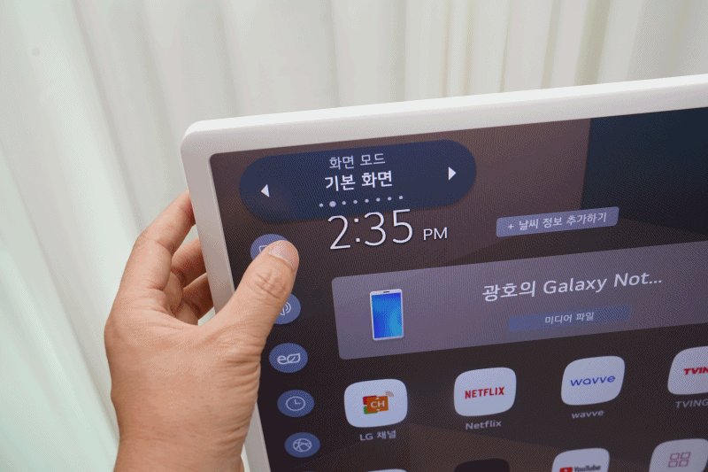 식탁에서 스마트폰으로 영상을 보다가 27인치의 큰 화면인 LG 스탠바이미로 보니깐 훨씬 좋네요. 또 식탁에서 등지고 TV 보는 것보다 같이 보기도 좋습니다.