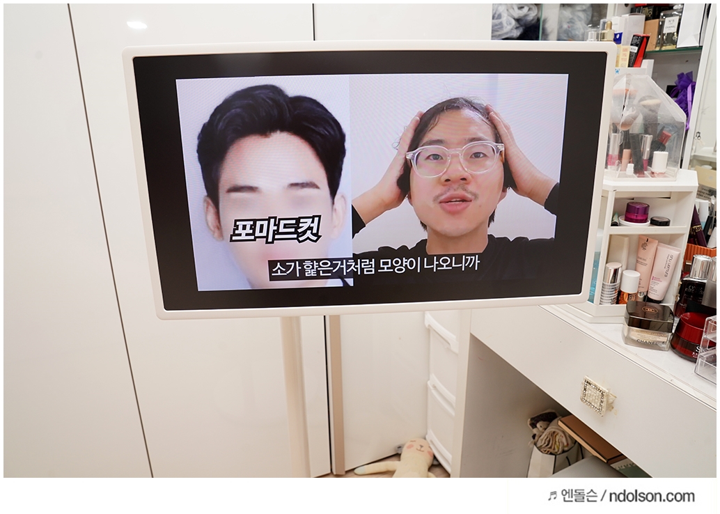 요즘은 미용실 원장님들이 운영하는 유튜브가 많아 남자/여자 머리 스타일 멋지게 만들어주는 팁도 쉽게 볼 수 있는데요. 화장대 옆에 LG 스탠바이미를 두고 머리 스타일을 알려주는 영상을 보면서 매만지는 것도 쉽네요.