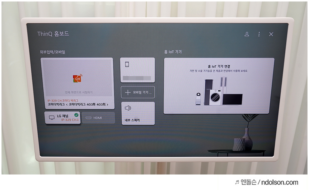 LG ThinQ 홈보드를 통해서 주변 디바이스를 한 번에 확인할 수도 있습니다. IoT기기를 연결해서 관리하거나 조작할 수 있습니다.