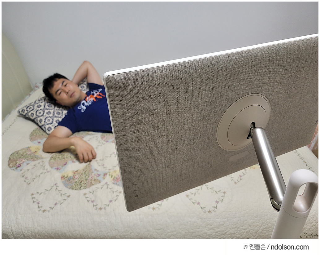 원하는 곳에서 편하게 시청할 수 있는 나만의 프라이빗 스크린이라는 점은 큰 장점이네요. 안방의 침대에 누워서 편하게 TV를 보니 피서지가 부럽지 않네요.