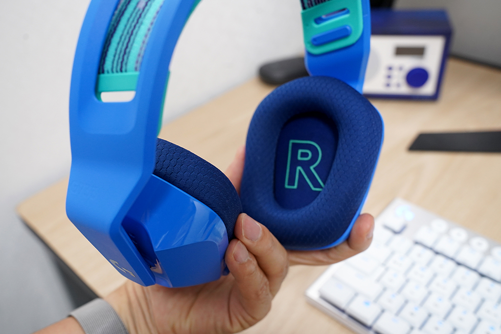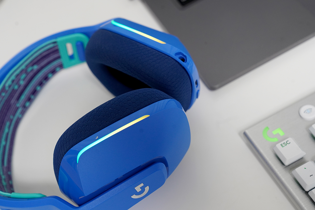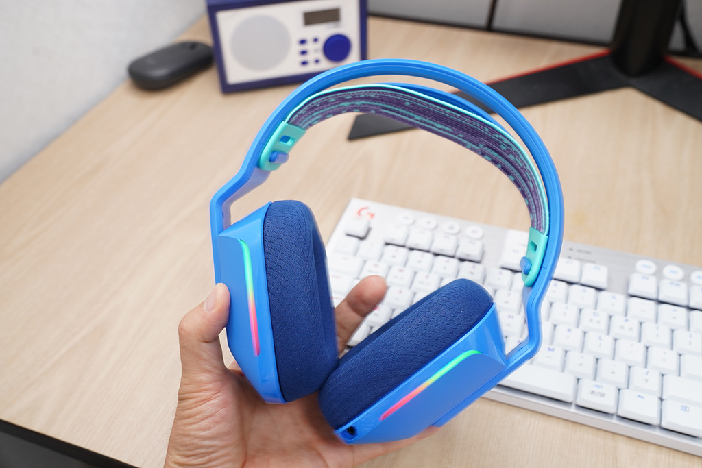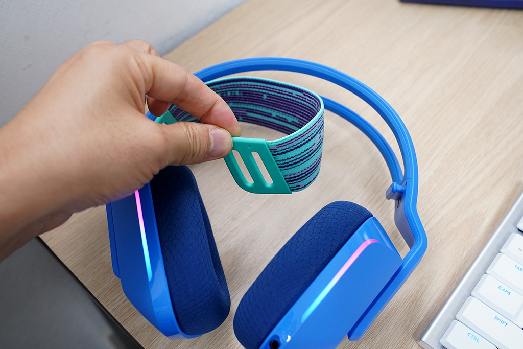 게이밍헤드셋 G733은 헤어밴드로 되어 있는 데 머리 신체사이즈에 맞게 조정이 가능하게 되어 있습니다. 장시간 착용해도 답답하지 않는 스포츠 소재로 시원하고 RGB는 게임할 때 화려함을 더해줍니다.