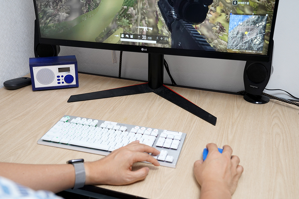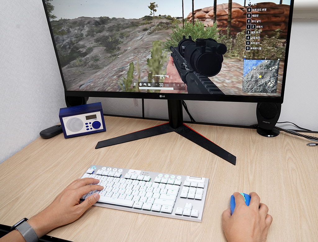 99그램의 가벼운 로지텍 G304 블루와 G913 TKL 화이트 궁합은 환상적이었습니다. 텐키리스라 숫자패드가 없어 책상을 더 넓게 쓰면서 핸들링할 수 있었는데요.