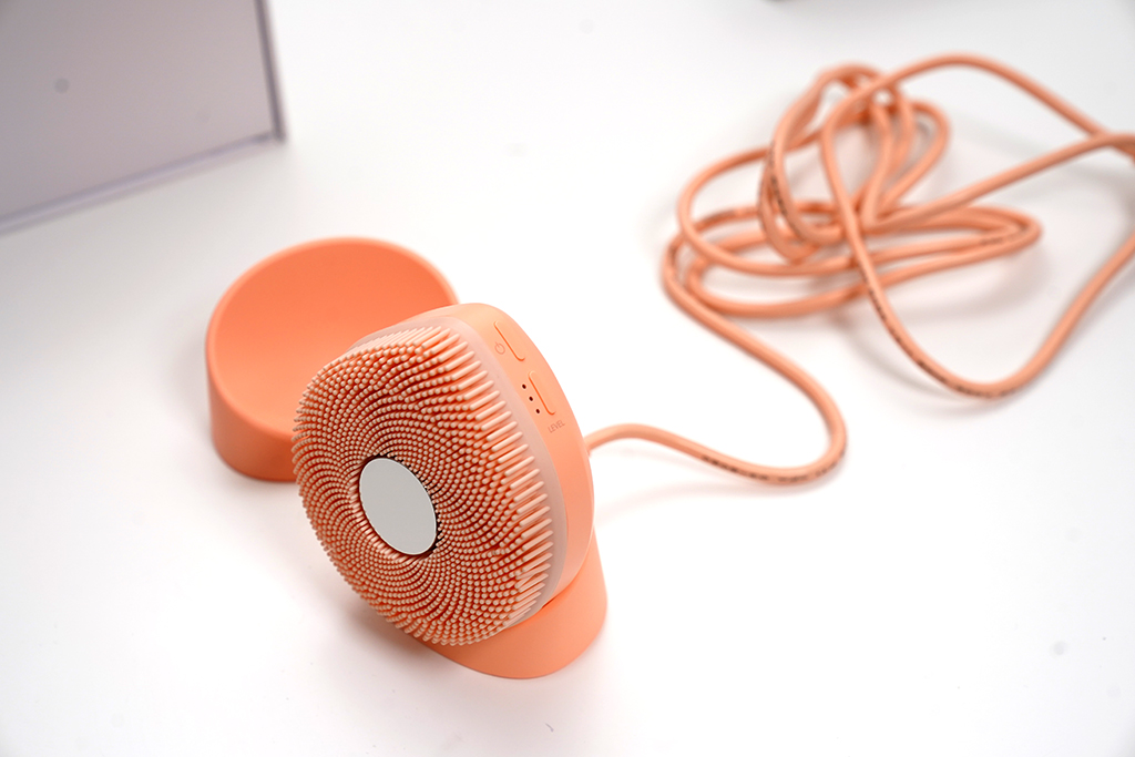 피부에 닿는 부분은 수많은 돌기로 되어 있고 초음파 진동으로 브러시와 함께 이중 복합 클렌징이 가능합니다.