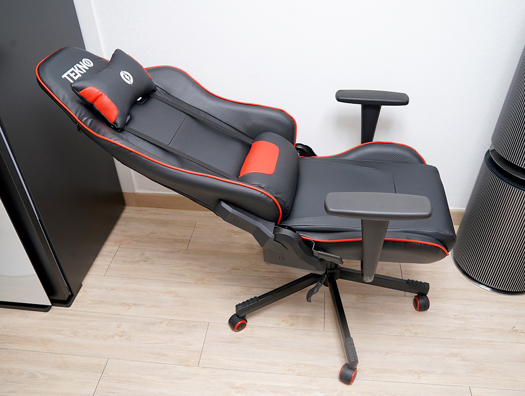 TEKNO 테크노 브랜드 제품으로 가격대비해서 저렴한 축에 드는 게이밍의자 입니다. 그래도 요추 등받이가 있어 엉덩이 쪽이 쿠션으로 편합니다.