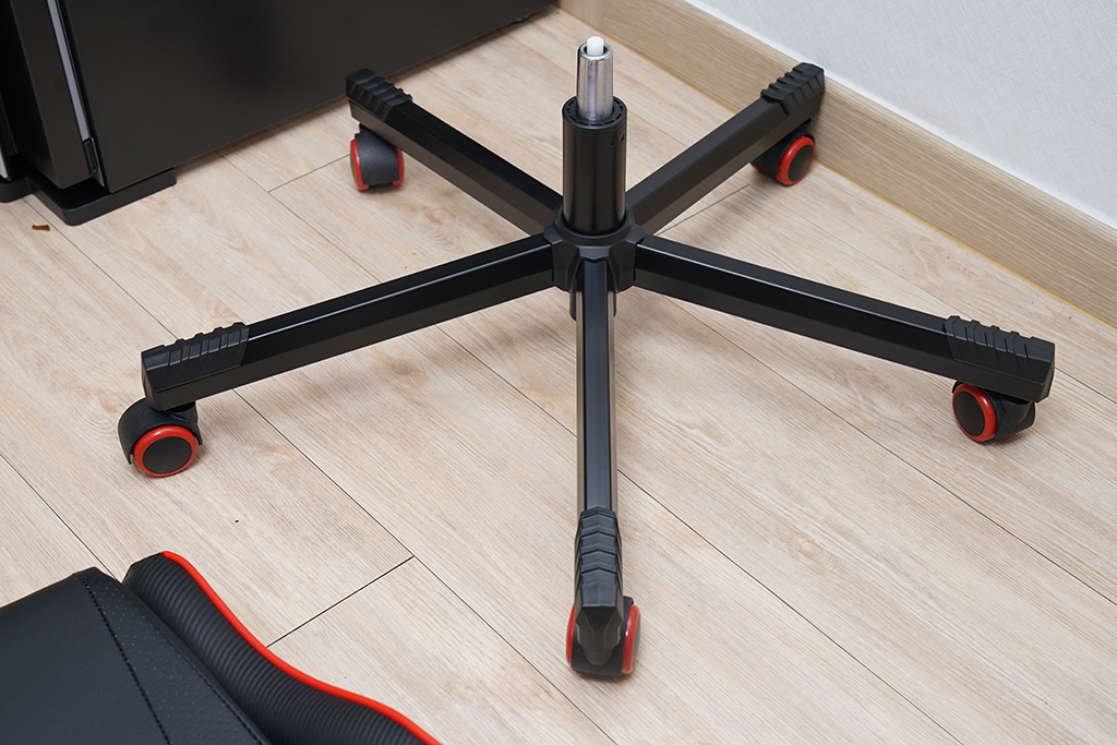 게이밍의자 바퀴에 의자를 올려두니 이제 완성 단계! 딱히 어려운 부분은 없었습니다.