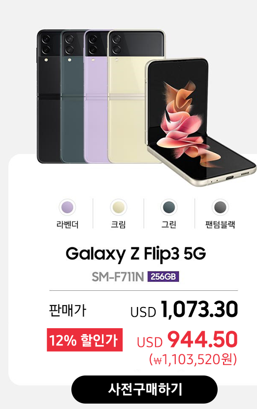 [1,266,930원](▼3%)[삼성 Z 시리즈]삼성 갤럭시 [8월 17일 사전판매 이벤트] Galaxy Z플립3 256GB