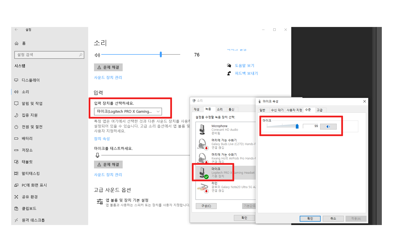 로지텍 헤드셋 G PRO X 마이크 소리 안 들릴 때