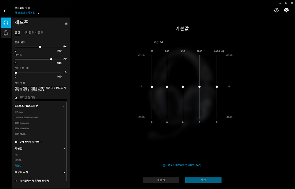 그밖의 추가 프리셋 찾아보기를 통해서 FPS, MOBA 등 뿐 아니라 프로게이머들이 설정한 오디오 EQ 프로필을 다운로드하여 설정하거나 나만의 설정을 수정해볼 수 있습니다. 자신의 스타일에 맞게 커스터마이징하여 음향을 즐기기 때문에 기호에 맞는 설정이 가능하네요.