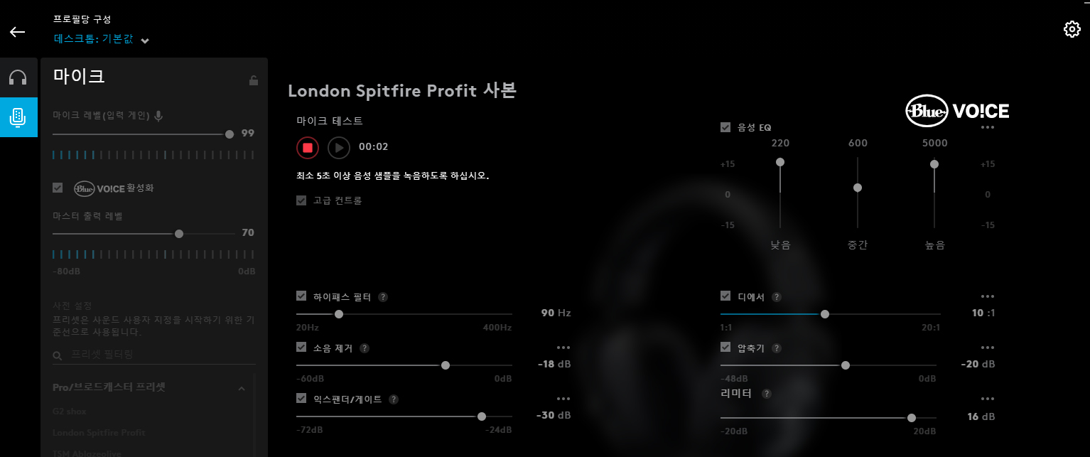 BLUE VO!CE 최첨단 마이크 기능을 활성화 할 수 있는데요. ON하면 확실히 전문가스러운 세팅과 성능을 즐길 수 있는데요. 마이크는 탈부착 가능한 형태로 필요에 따라 부착할 수 있습니다.