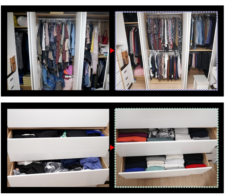 정리 전/후 모습을 보니 참 큰 차이를 느꼈어요. 사람의 인원과 삶의 스타일에 맞게 옷을 효율적으로 정리해주셔서 좋았는데요. 체계적인 정리로 공간에 대한 활용이 잘되게 깔끔하게 정리가 되었네요. 너무 만족합니다.
