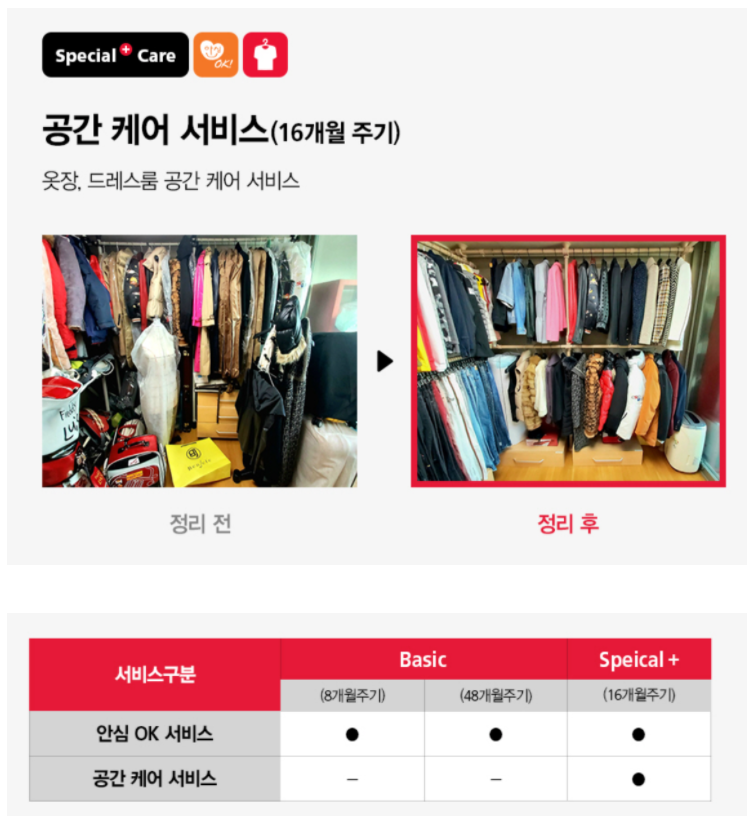 SK매직 스페셜 렌탈 서비스를 이용하면 SK매직 공간케어 컨설턴트를 받을 수 있는데요. 필자처럼 드레스룸이나 옷장 등의 정리가 생각처럼 되지 않는 다면 전문가의 정리 상태 진단과 공간 재배치, 정리정돈 및 마무리까지 모든 서비스를 받을 수 있는데요.