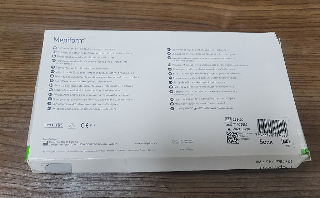 흉터완화 실리콘시트로 외부 작그으로부터 흉터 피부를 보호하고 습윤 환경을 유지해서 흉터를 호전시켜줍니다.