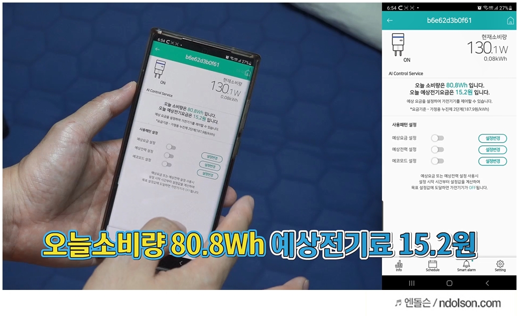 약 50분정도 경과하였을 때 소비전력을 측정하였습니다. 난방장치이지만 예상전기료는 15.2원으로 상당히 저렴하였습니다. 온열매트는 전기 효율이 높다고 볼 수 있습니다.