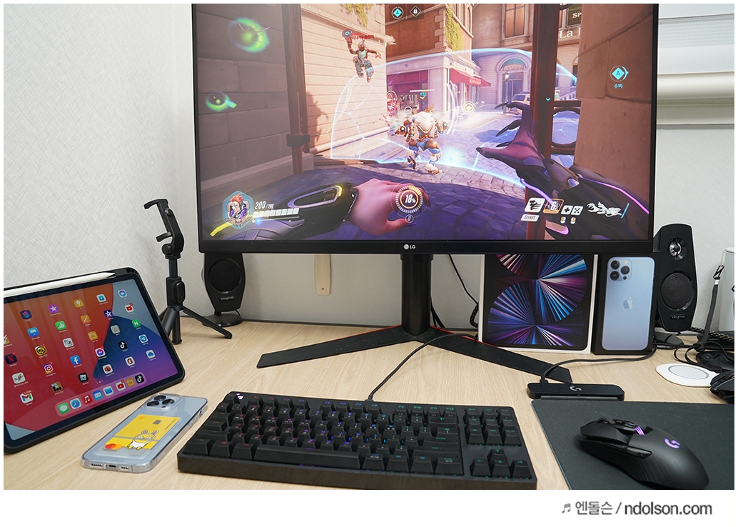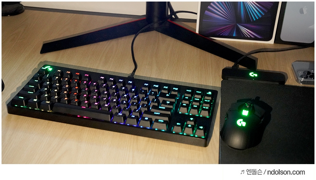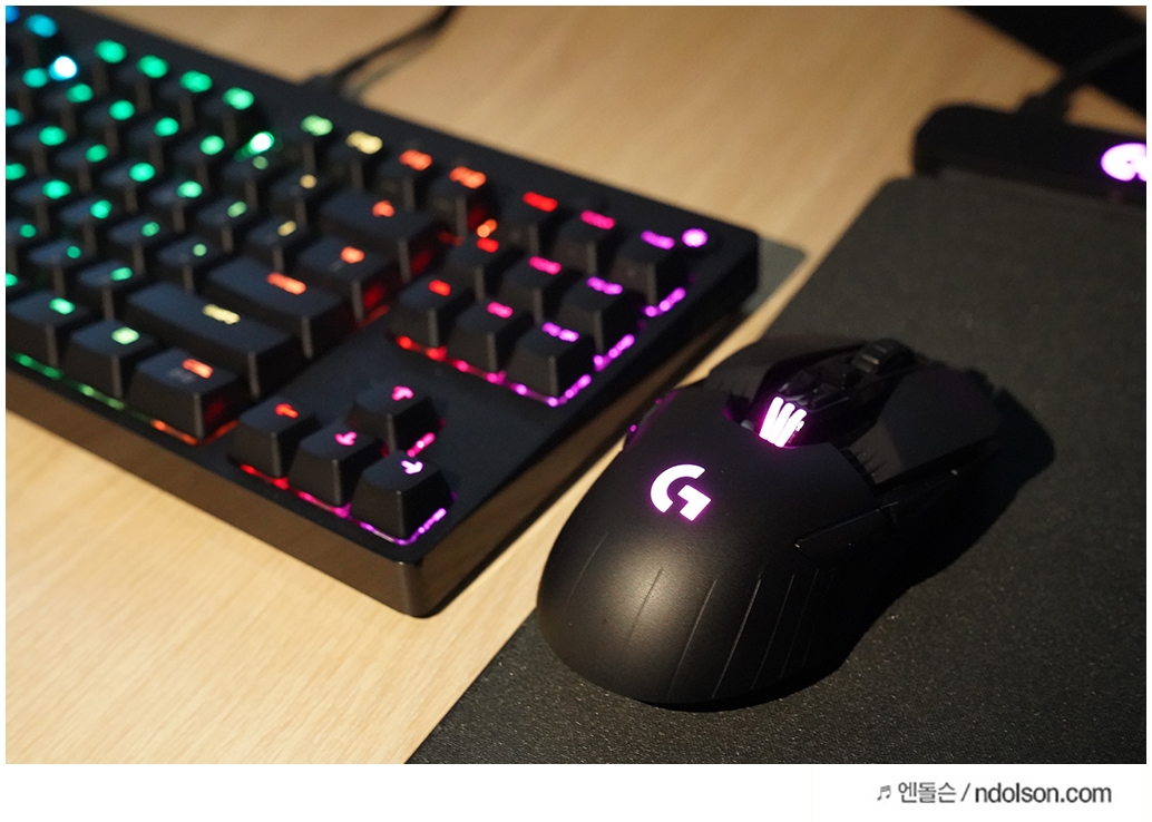 POWERPLAY 마우스 무선충전 패드와 G PRO기계식키보드, 로지텍 G903 HERO 까지 모두 동기화 설정을 해두면 RGB색상을 깔맞춤 할 수 있습니다.