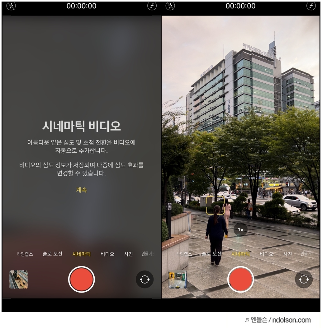 아이폰13의 일반 비디오와 차별화를 둔 시네마틱은 정말 영화 느낌을 촬영이 가능합니다.