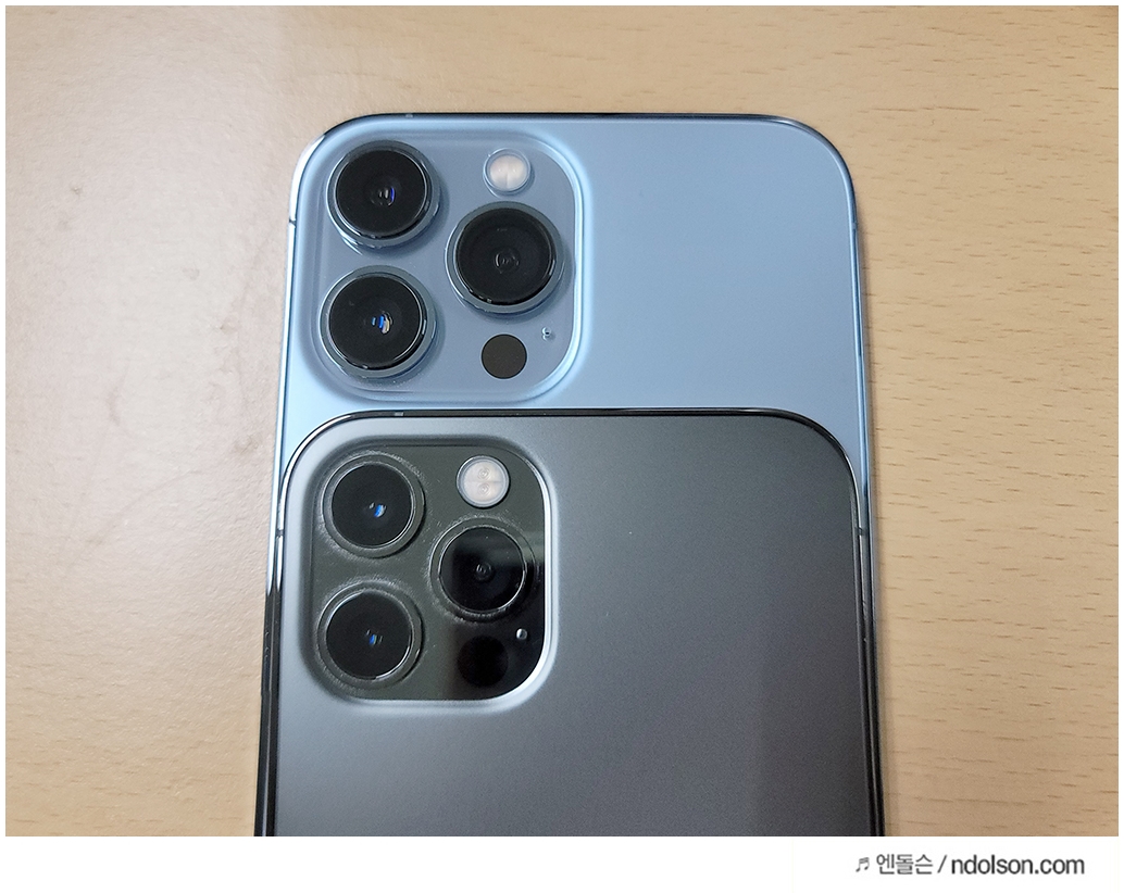 다만 아이폰13 프로에서 망원, 와이드, 울트라 와이드 3개의 트리플카메라로 즐기는 재미가 커서 선호합니다. 이번에는 카메라가 더 커져 왕눈이가 되었습니다.