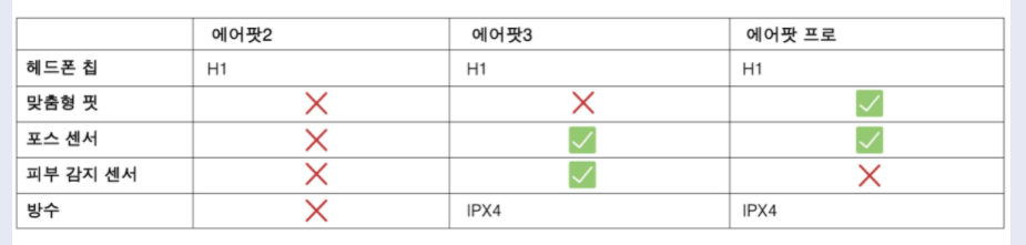 방수는 에어팟3, 프로 모델에 모두 IPX4가 지원됩니다. 하지만 오디오 기능에서의 노이즈 캔슬링 차이와 배터리는 최대 1시간 차이가 발생합니다.