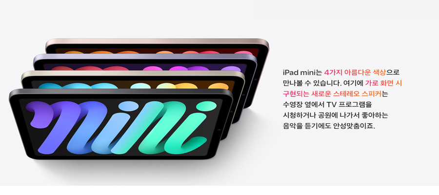 아이패드 미니6의 색상은 스페이스 그레이, 핑크, 퍼플, 스타라이트 4가지를 지원합니다. 커뮤니티에서는 퍼플을 추천하던데 깔끔하니 좋을듯 합니다.