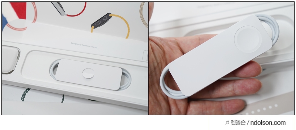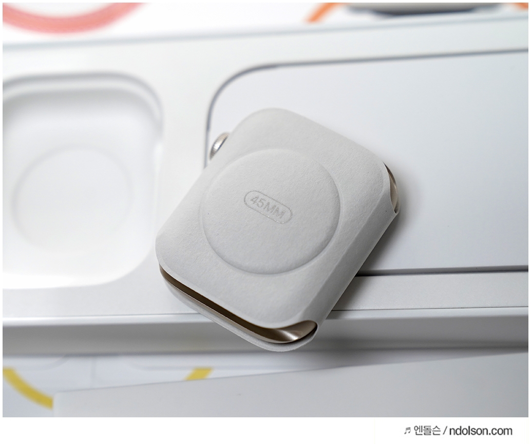 마지막까지 종이로 디테일하게 포장이 되어 있네요. 애플워치 모양에 맞게 종이로 만들어져 있고 후면에는 mm가 쓰여 있습니다.