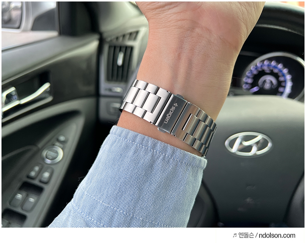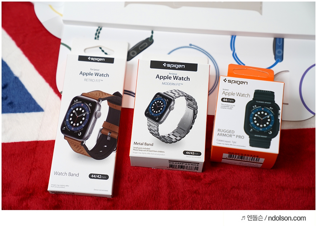 슈피겐의 메탈 모던핏 실버, 러기드 아머프로 블랙, 레트로핏 브라운 3종의 밴드를 준비하였습니다
