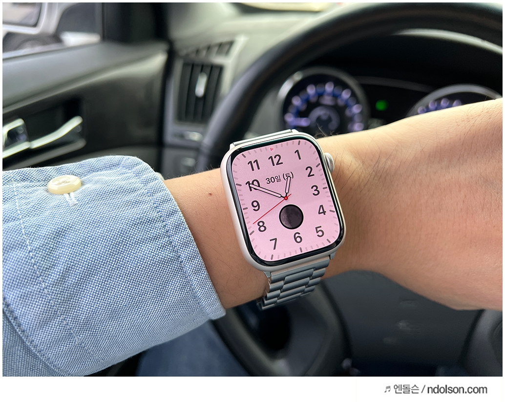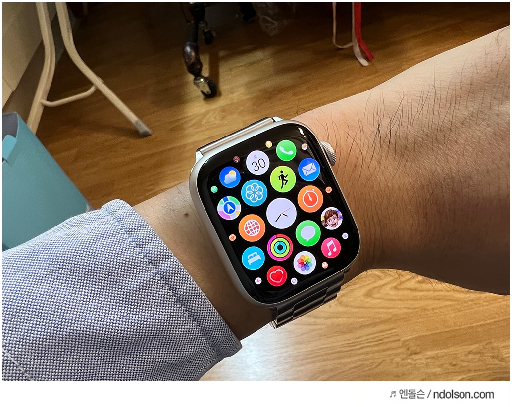 평소 큰 스마트폰을 좋아하고 큰 시계를 선호해서 무겁지만, 애플워치7세대 45mm 가 화면이 커서 선택하였습니다. 하지만 계속 착용해야 하니 무게에 민감하신 분은 선택 시 고민을 하셔야 합니다.