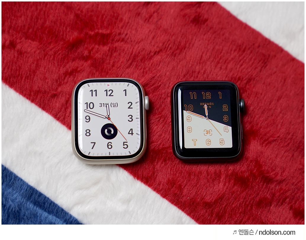 왼쪽 : 애플워치7세대 / 오른쪽 : 애플워치2세대 나이키
